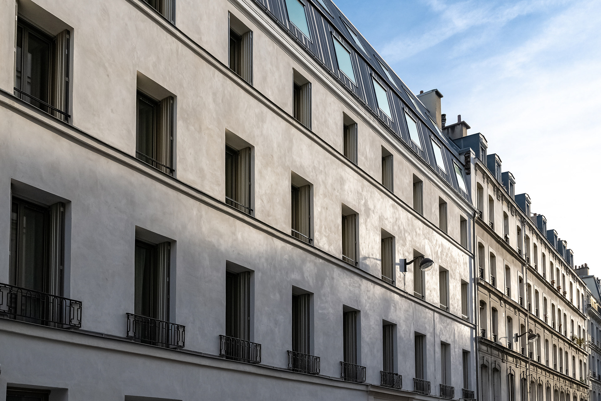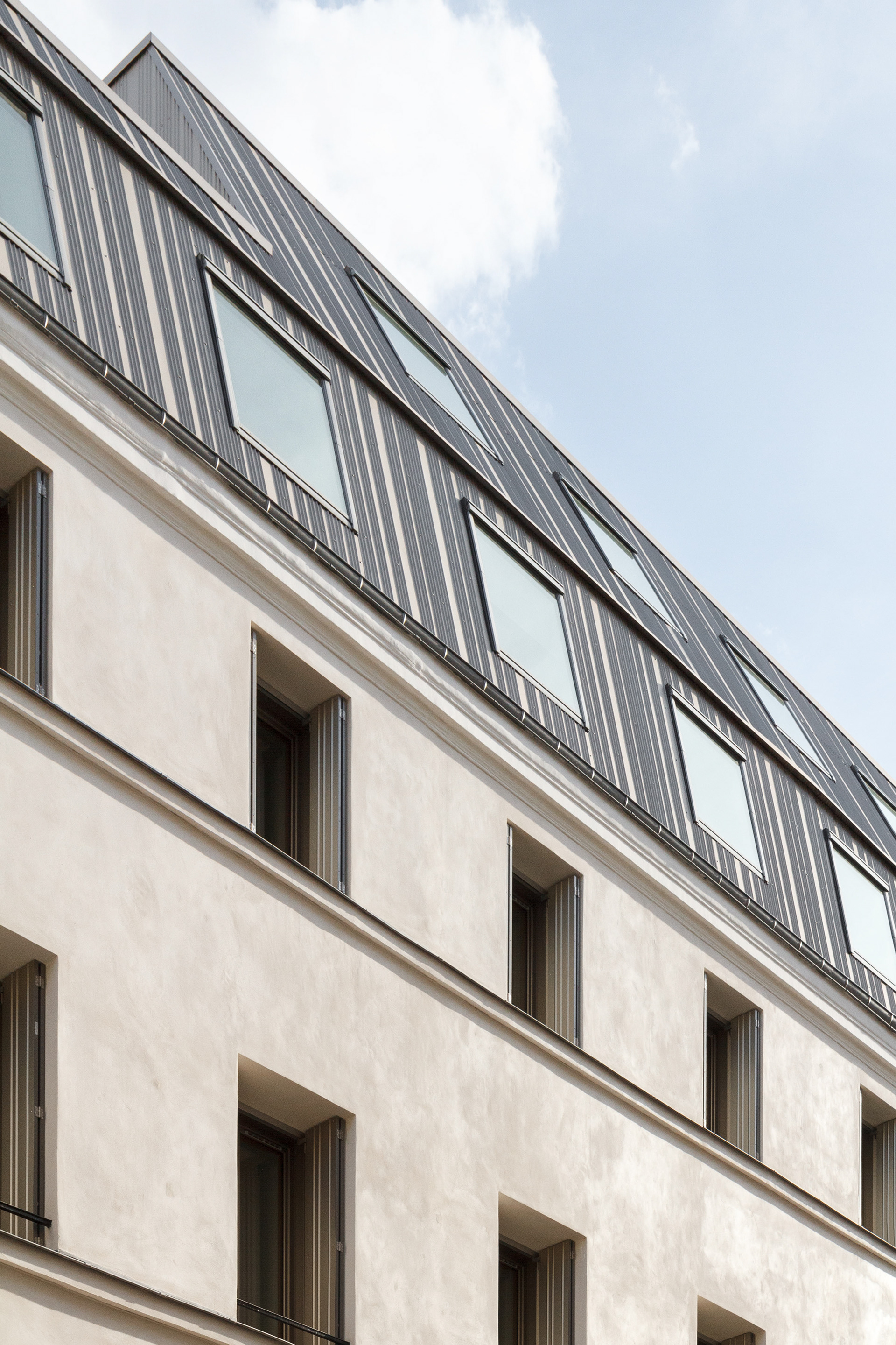 Restructuration lourde d'un bâtiment du XVIIe siècle (ancien dispensaire) Résidence étudiants - 68 chambres Labels : BBE-10% - profil Ville de Paris MO : RIVP Equipe : D.Elalouf & G.Prognon, avec S.Jouin